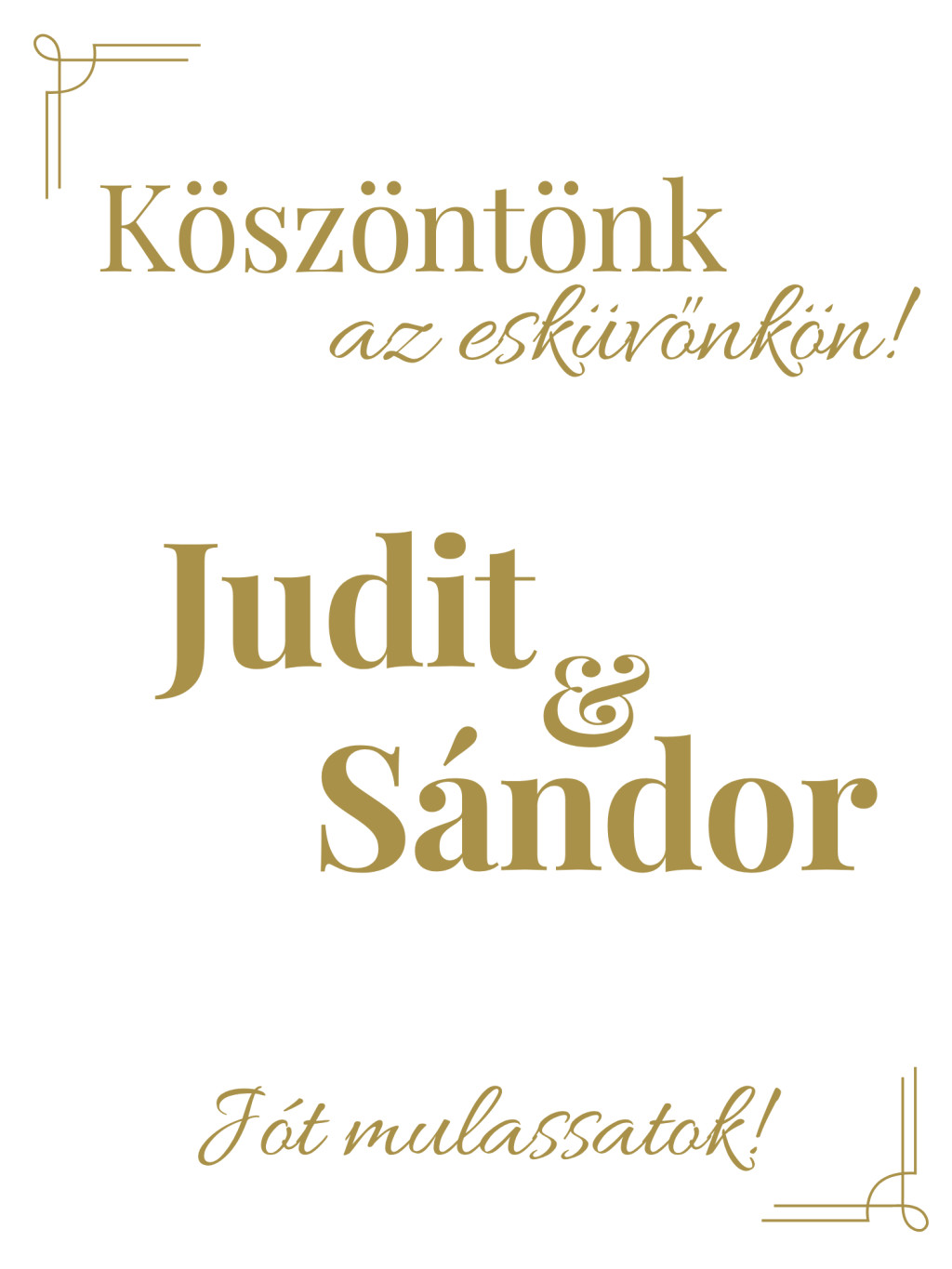 Tedd még különlegesebbé a nagy napot egy elegáns esküvői köszöntő táblával! A táblát metál arany felirattal és mintával készítjük, hogy a legszebb pillanatokhoz illeszkedjen.